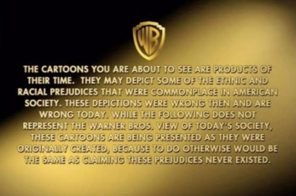 The disclaimer explains that the cartoons are products of their time and may include ethnic and racial prejudices that were once commonplace in American society. It acknowledges that these depictions were wrong in the past and remain wrong today. Yet, importantly, Warner Bros. chooses to present these cartoons in their original form, accompanied by this contextual note.